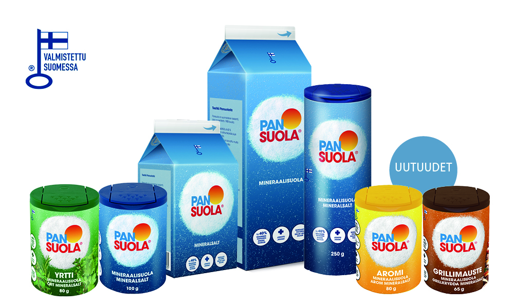 Pansuola sarjaan kuuluu kolme maustettua suolatuotetta: AromiPansuola, GrilliPansuola ja Pansuola Yrtti.