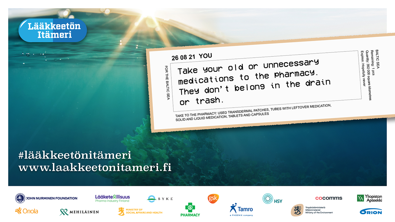 The medicine-free Baltic Sea (Lääkkeetön Itämeri) campaign takes place for the fourth time to remind people how easy it is to return expired and unused medicines: there are over 800 pharmacies in Finland which accept unused medicines. Oriola is participating in the industry-wide campaign as part of its corporate sustainability programme.