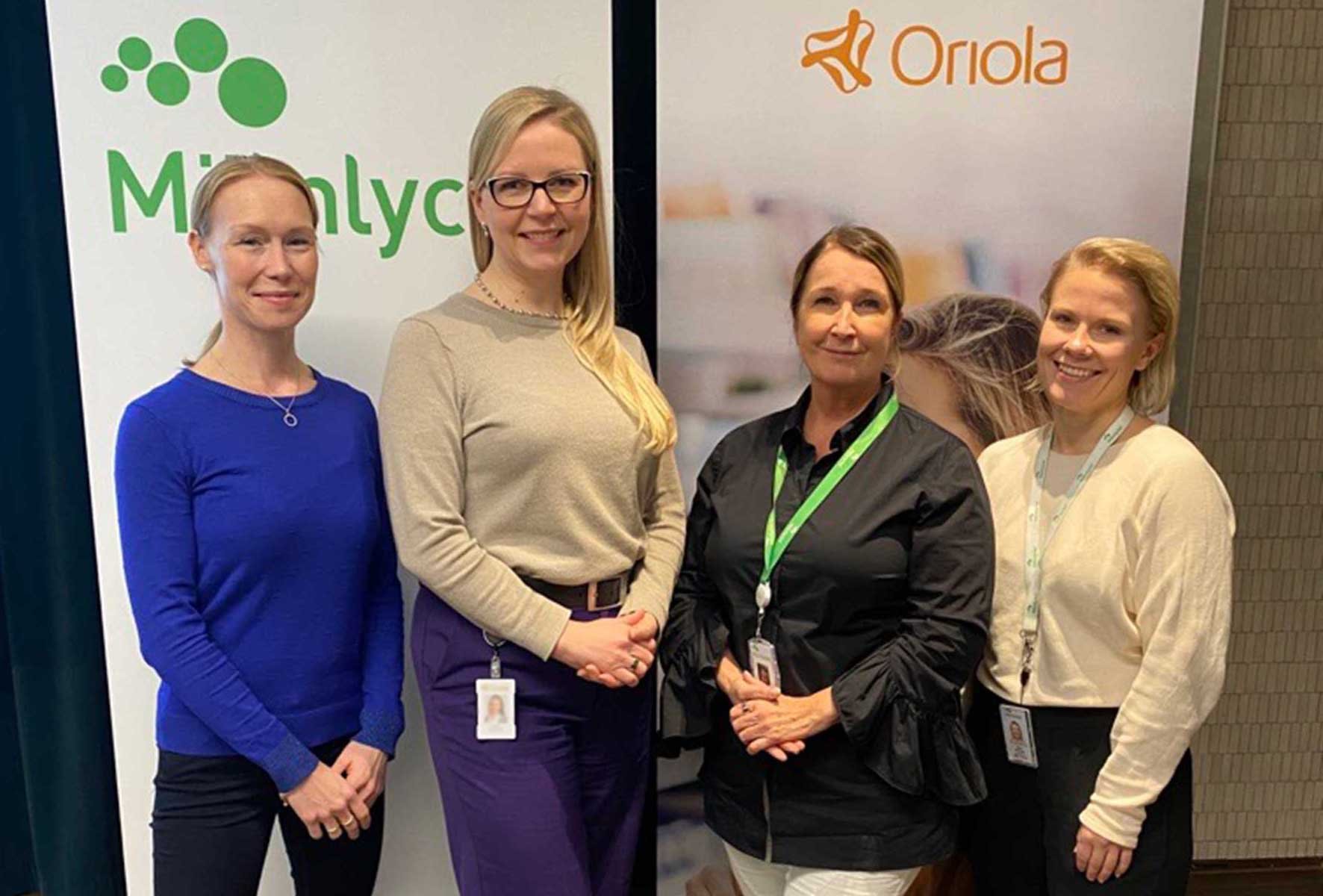 Päivi Roihu, Sales Representative (from the left) and Maarit Salminen, Customer Excellence Manager from Oriola with Siru Schroderus, Account Manager and Riina Partanen, Sales Manager for Wound Care in Finland and Sweden from Mölnlycke, at the training event in Turku.